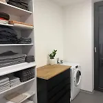 A Potony városi villa egy spa káddal, külön WC-vel és pezsgőfürdővel felszerelt fürdőszobával rendelkezik. Szárító és törölközők szintén biztosított kényelmének fokozása érdekében.